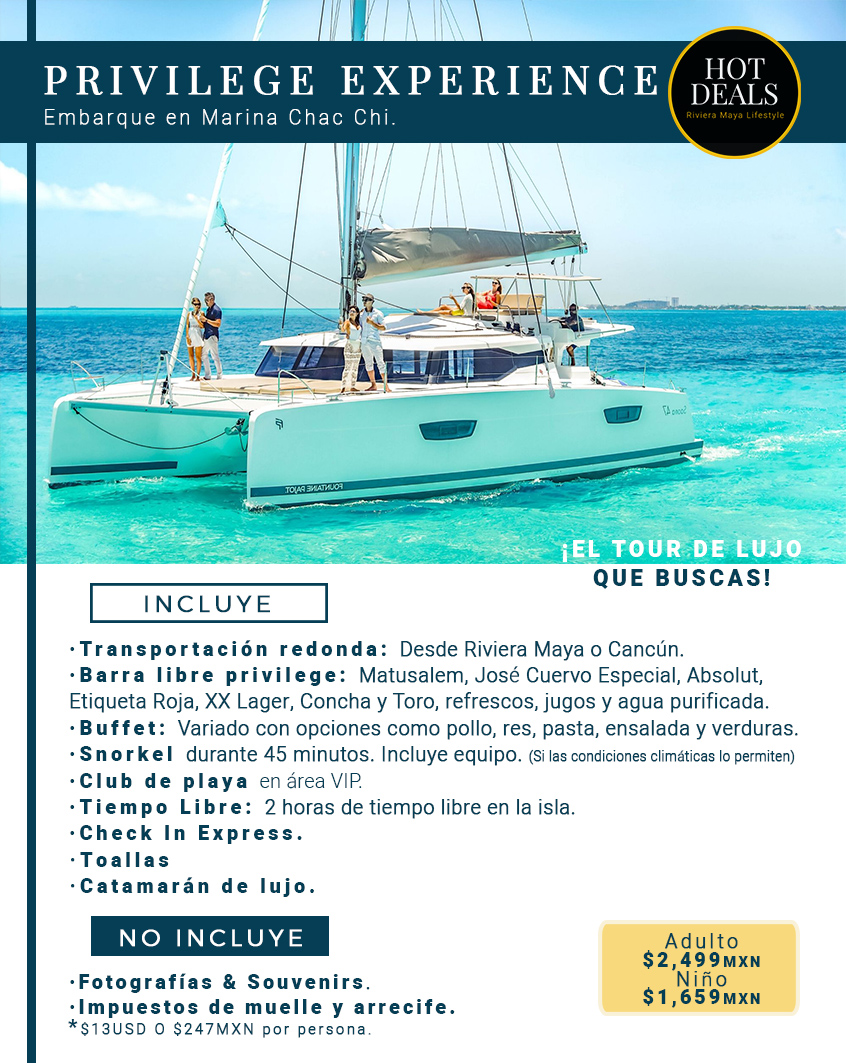 De acuerdo a lo dispuesto en la “Ley Federal de Protección de Datos Personales”, declara HOT DEALS RIVIERA MAYA, ser una persona física con actividad empresarial en conformidad con las leyes mexicanas, con domicilio en CALLE MANGO 78 MANZANA 26 LOTE 1 FRACCIONAMIENTO LOS OLIVOS FASE 3 C.P 77714 SOLIDARIDAD, PLAYA DEL CARMEN y como responsable del tratamiento de sus datos personales, hace de su conocimiento que toda la información de nuestros clientes, proveedores y trabajadores, es tratada en forma estrictamente confidencial por todas las áreas de la empresa, reiterando nuestro compromiso a su privacidad y el derecho a la libertad informativa.